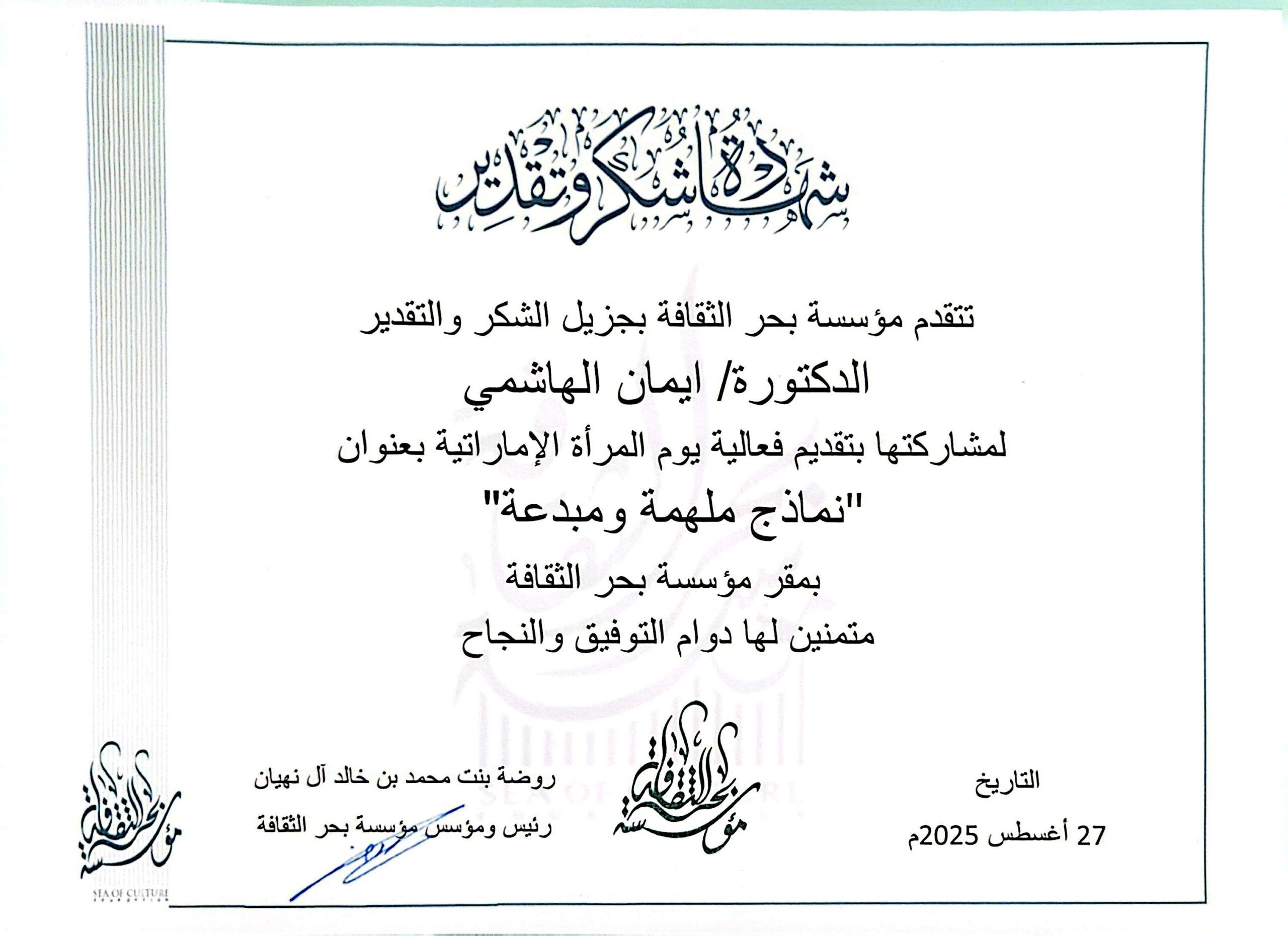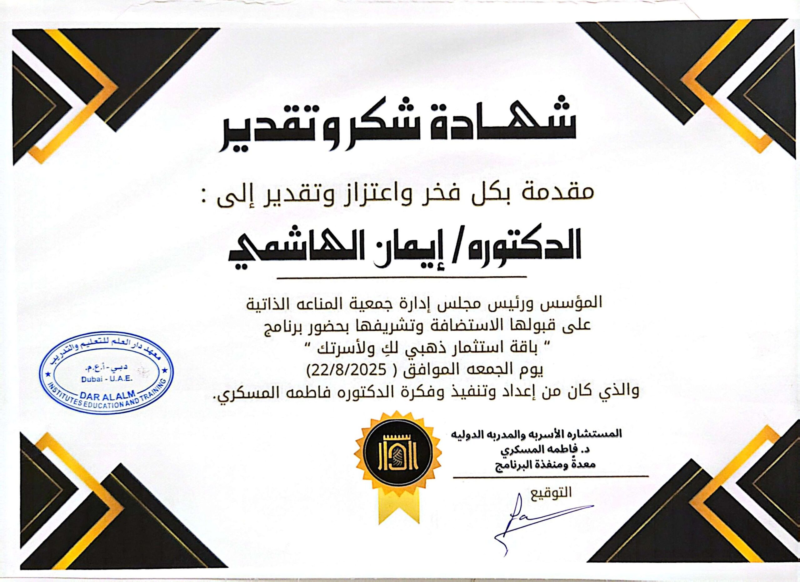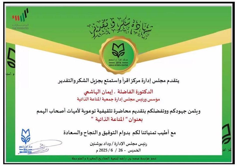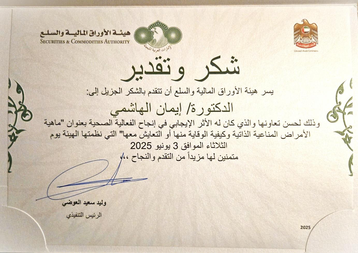 02... شهادة تقدير محمد بن خالد آل نهيان سبتمبر