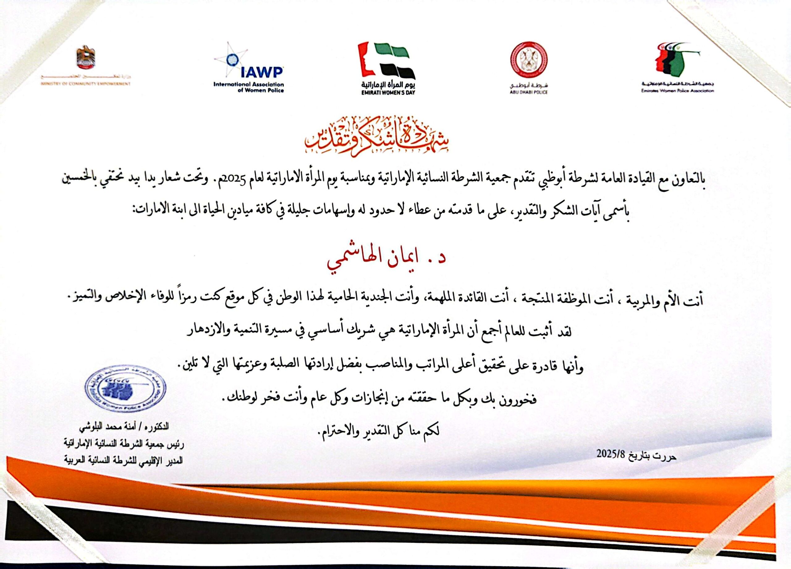 06.. المدير الإقليمي للشرطة النسائية في الشرق الأوسط - الدكتورة آمنة محمد البلوشي